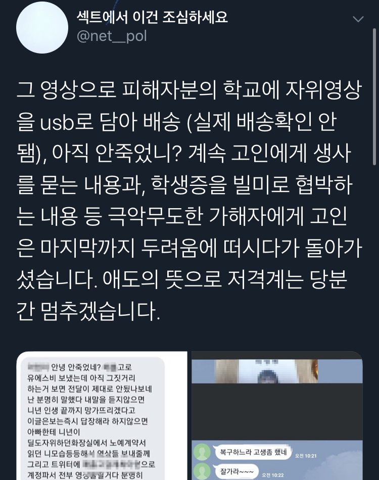 박사를 위협하는 다른 텔레그램 비밀방들에 보복을 하는 행동을 한다고 함.