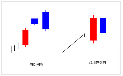- 추가상승에 실패하여 되밀려 하락추세 전환 암시