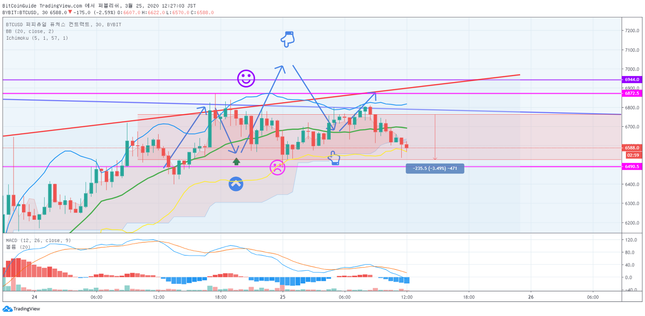 BTCUSD 3월 25일 바이비트 비트코인 차트분석입니다. by BitCoinGuide on TradingView.com