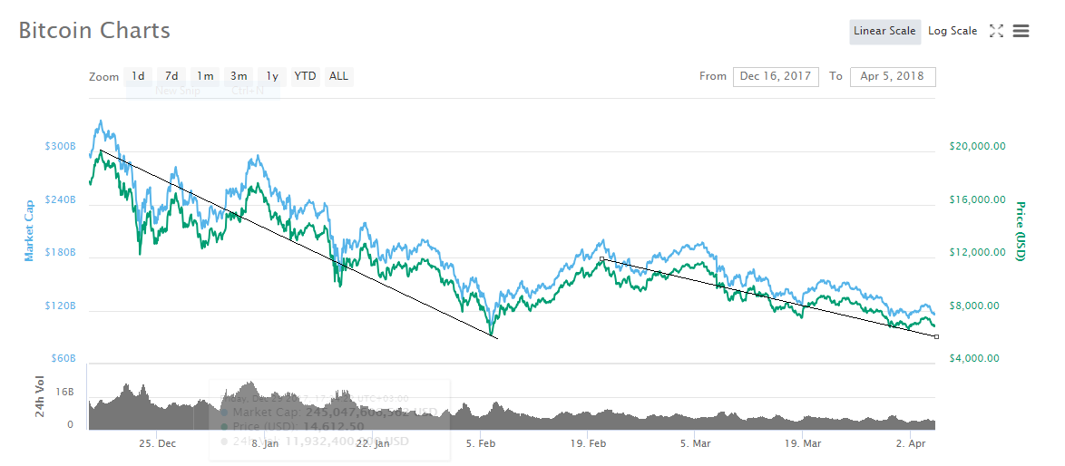The global crypto market reached its peak on 8 January 2018 of $828 billion, and then fell by 70% to $243 billion on 1 April 2018. People reacted in three ways.