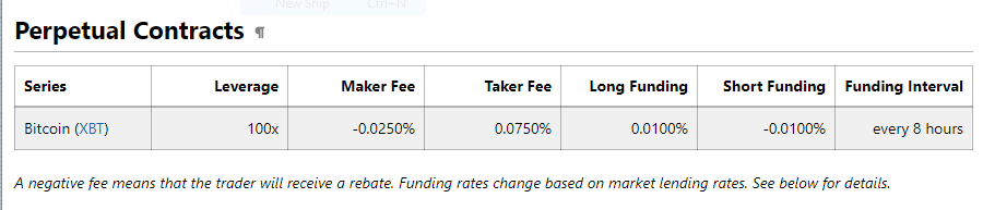 It is not widely known that BitMEX charges extremely high fees to takers (those who use Market tab in the screenshot) but actually pays market-makers to trade (those who use the Limit tab). A marker-maker is defined as someone who places a Limit order and does not take the market price to open or close a trade. For all Bitcoin contracts: