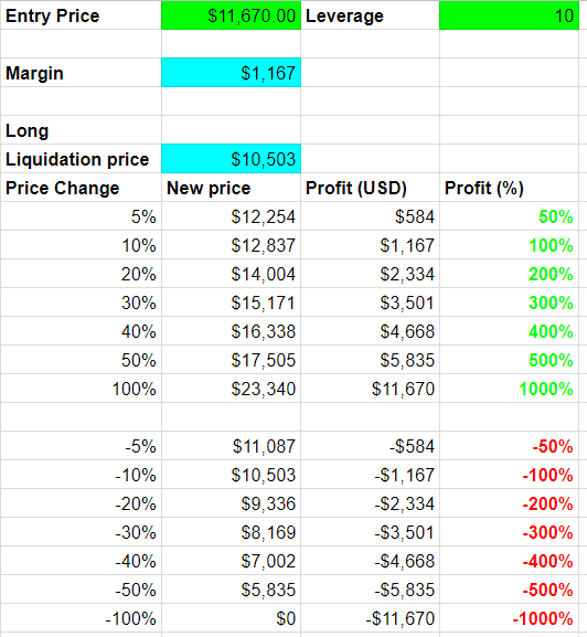 Buy 1 Bitcoin with 0.1 Bitcoin Initial Margin: Example of 10x Leverage