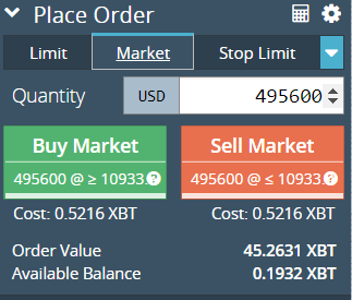 Set-up to buy 1 Bitcoin ($11,670) with 0.1 BTC ($1,167) Margin i.e. 10x Leverage Long