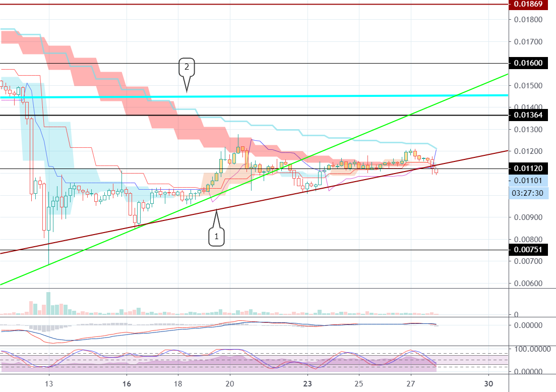 상승 추세선 (1)에서 하락하게 된다면, BTC의 상승에 맞추어서 상승이 늦어 질 수 있습니다.