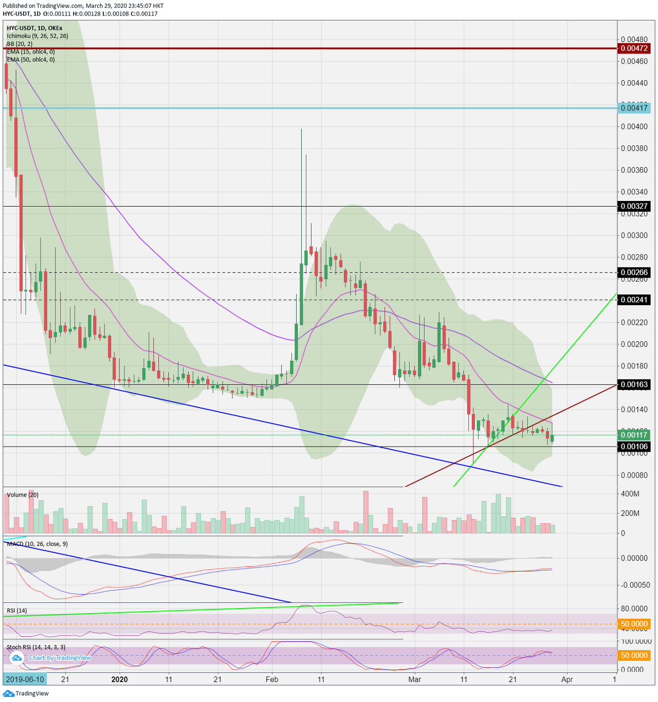 코멘트: OKEx 거래소의 HYC/USDT 차트입니다.