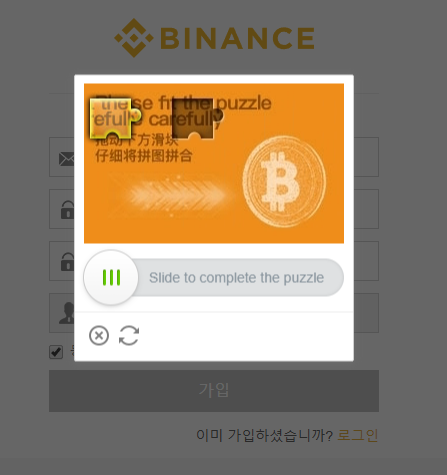 동의버튼을 누른후 이런 보안사진이 뜨면 슬라이드통해 퍼즐을 맞춰주세요