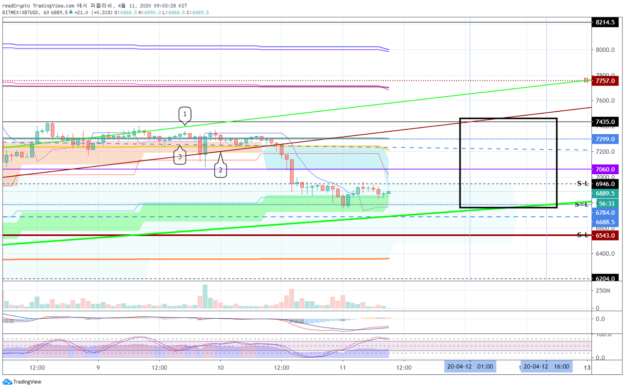 4월 10일 ~ 4월 17일 (9일~18일) 경까지 7K대에서 가장 중요한 기간이 될 것으로 예상되고, 횡보할 것으로 예상됩니다.