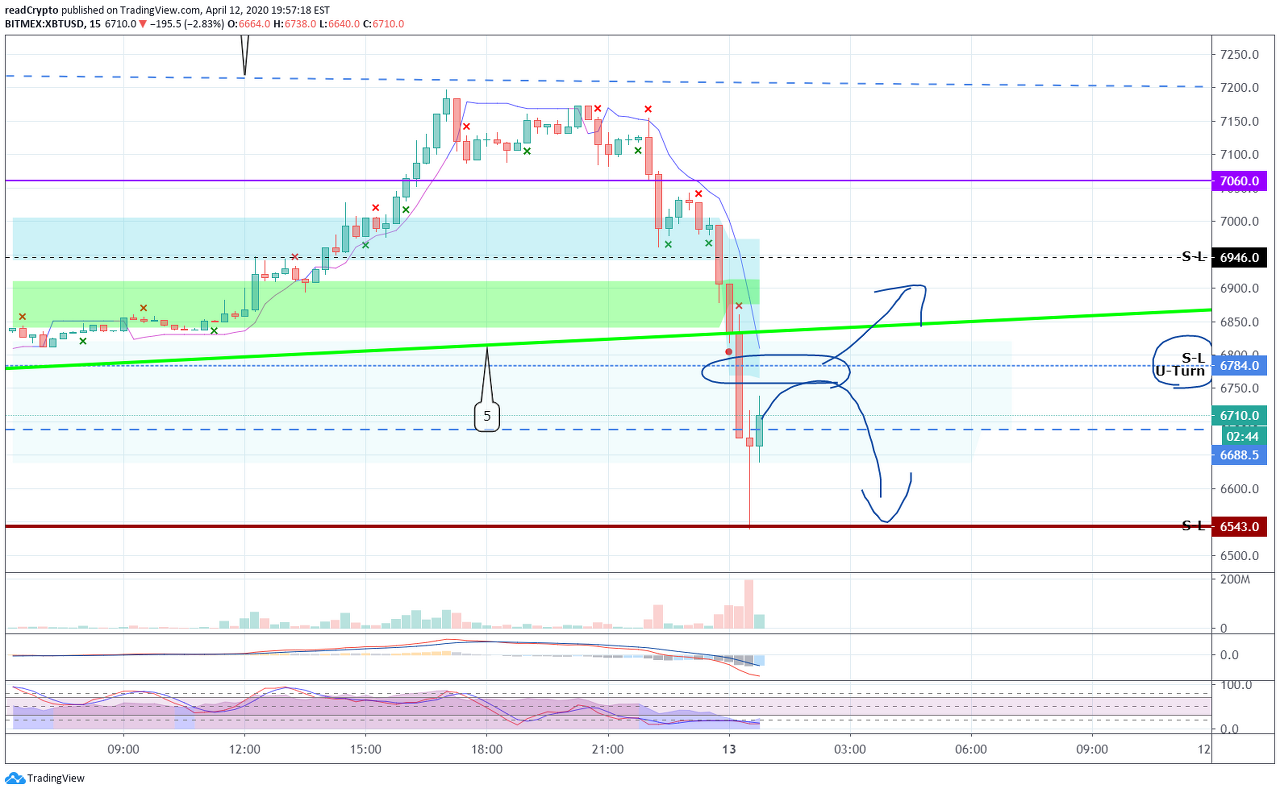 중요 시간대(차트에 표시) 이후에도 6946 지점에서 지지를 받고 상승할 수 있는지 확인해야 합니다.