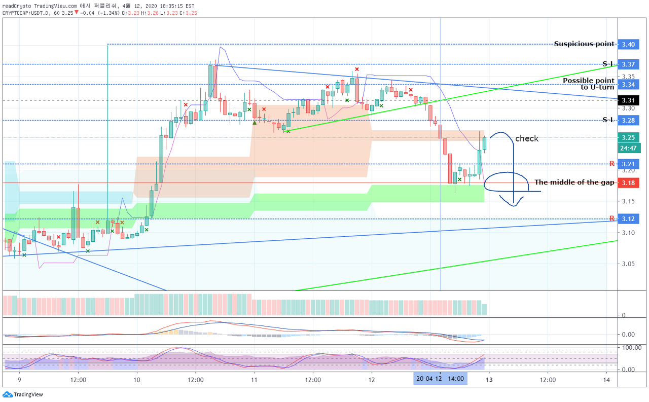 USDT.D : 3.31~3.34 구간에서 반드시 저항