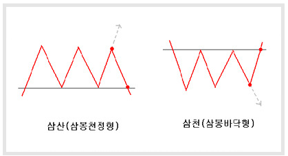 3개의 산모양으로 3개의 최고점을 형성한 패턴