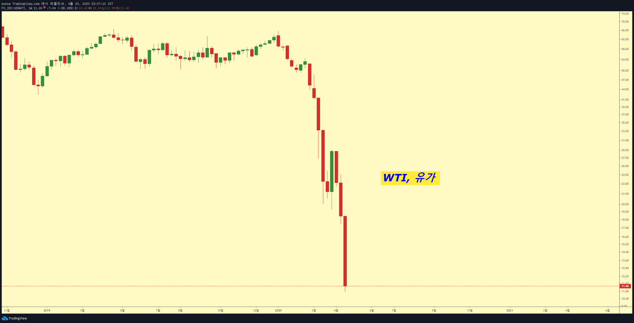 텍사스 원유 WTI, 오일 값이 11$까지 하락하였습니다