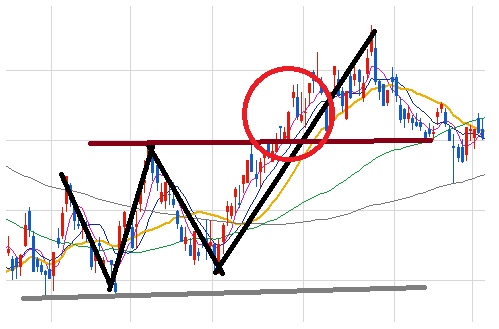 위와 같이 두번 바닥을 치고 올라오는 그림으로 첫번째 바닥보다 보다 두번째 바닥이 높을 경우 좀 더 쌍바닥 패턴에 가까우며 그 만큼 매매 성공 확률도 높게봅니다.