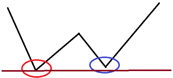 두번 바닥을 찍는다해서 쌍바닥 혹은 투버텀,W패턴으로 불리우는 패턴으로 두번째 바닥을 찍고 이전 고점을 뚫을 경우 크게 상승한다는 전제로 매매를 합니다.