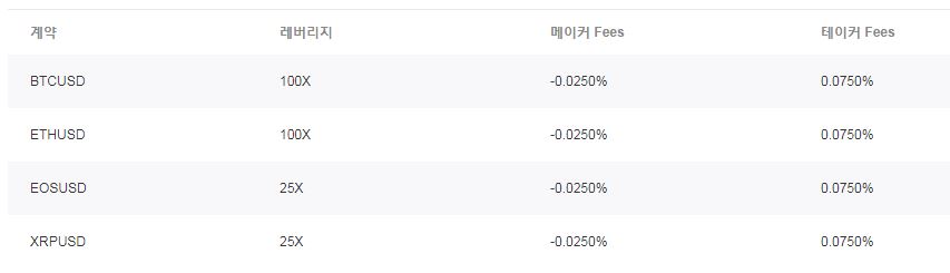 음수표기는 거래자의 수수료 획득을 나타냅니다.