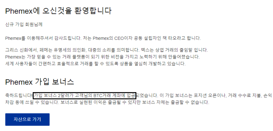 첫 번째와 두 번째 기본적인 내용만 참여해도 PHEMEX 거래소 이용 시 운용할 수 있는 12불이 생성됩니다.