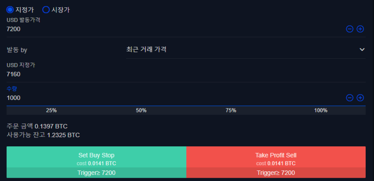 해당 기능은 일반적으로 손절이나 익절로쓰를 걸어두기 위해 사용되며
