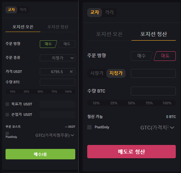이번에는 포지션오픈/포지션청산 두가지로 나눠집니다.