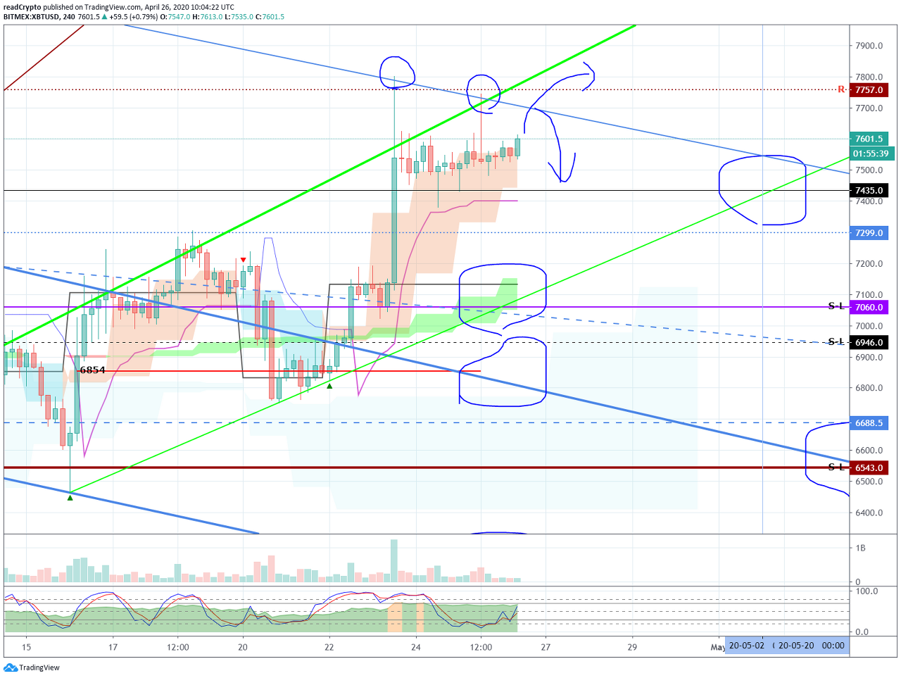 비트코인 (BTC) - 4월 26일 (7435? 7299?) by readCrypto on TradingView.com