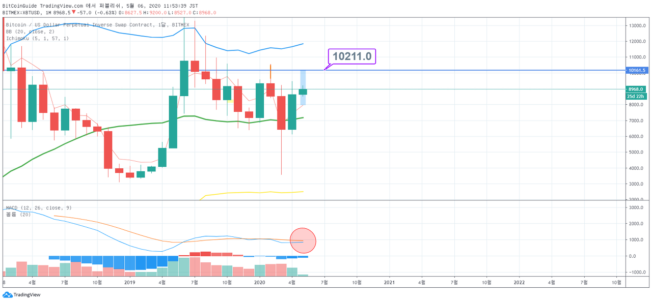 역사깊은 XBTUSD 비트맥스 월봉 데이터를 가지고 왔구요.