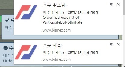 시장가 거래가 시도되면 사이트의 우측 하단 부분에