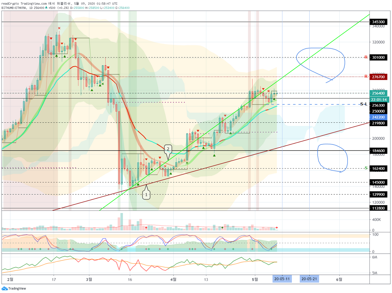 지지나 저항은 1D 차트의 종가 기준 입니다.