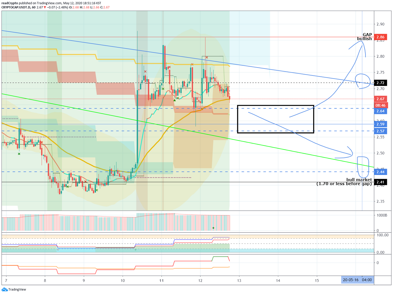 2.72 지점 이하로 하락할 수 있는지 확인이 필요합니다.