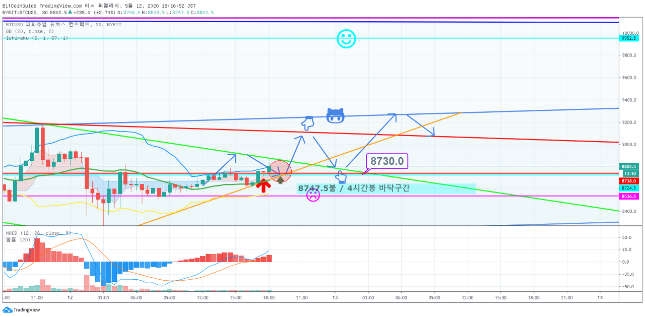 | BTCUSD 5월 8일 비트코인 바이비트 차트분석입니다.(비트코인가이드) (0) | 2020.05.08 |