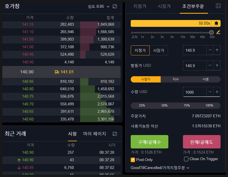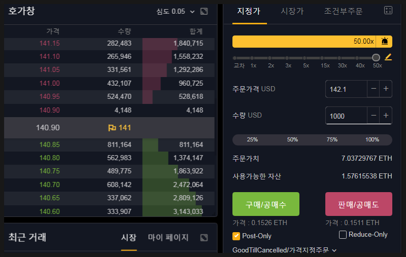 post - only 체크박스를 체크하시고 주문하시면 실수없이 지정가주문만 넣을수있습니다