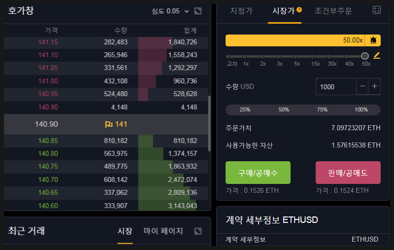 시장가 거래는 수수료가 발생하며 1틱높은금액 + 0.075%(수수료) 부분으로 들어갑니다