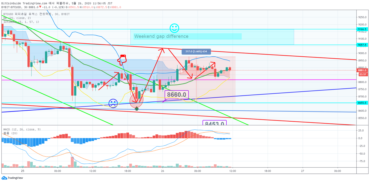 | BTCUSD 5월 27일 비트코인 바이비트 차트분석입니다.(비트코인가이드) (0) | 2020.05.28 |