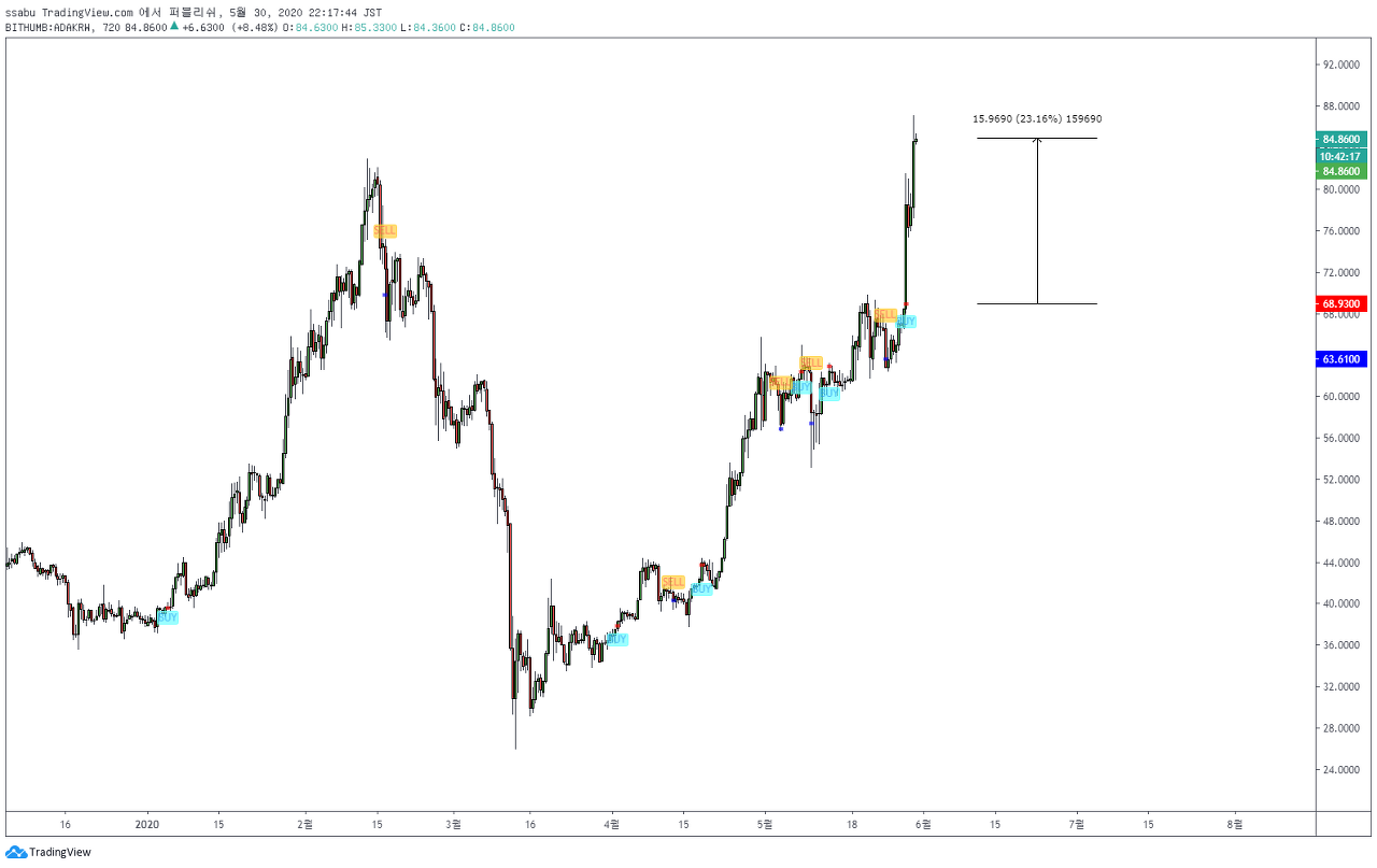 이더와 에이다는 위와 같은 구간을 그려준 뒤에 먼저 급등구간에 돌입하였습니다.