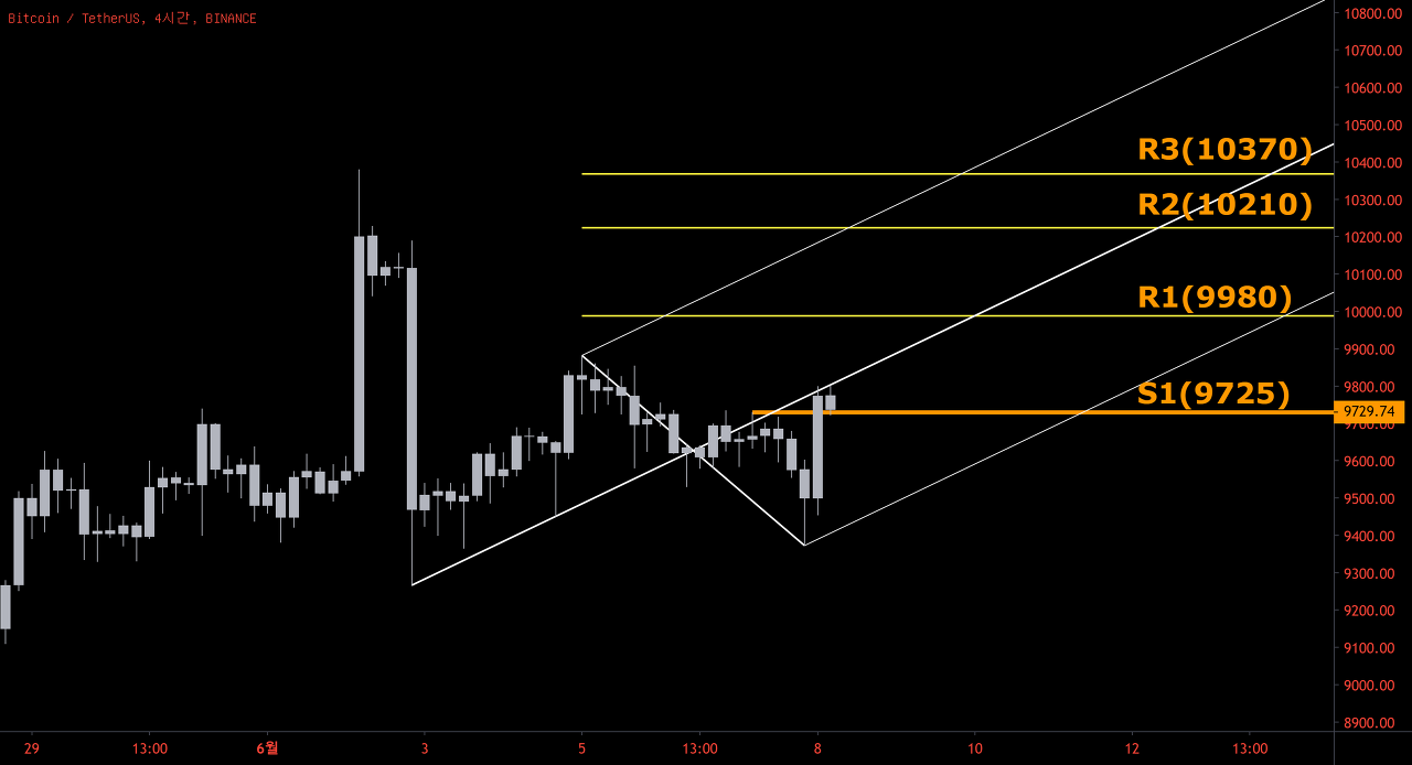 바이낸스 S1: 9410, S2: 9370으로 정정합니다.