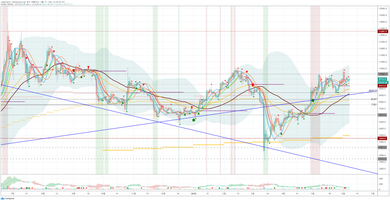 현재 BTC는 9317~10088.5 구간에서 횡보 중 입니다.