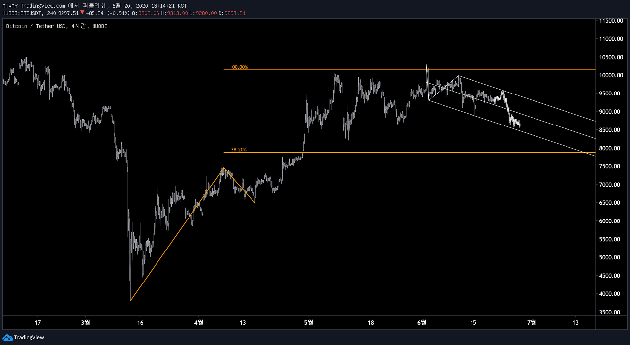 최근에 반등이 나온 지점은 500 EMA 가 지나가던 자리였습니다.