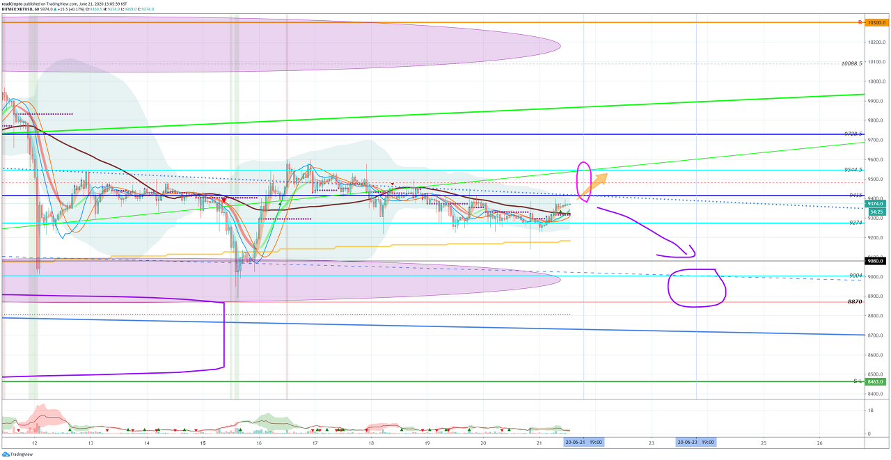 차트에 표시된 시간 이후에 9415 지점 이상 상승할 수 있을지 확인이 필요합니다.