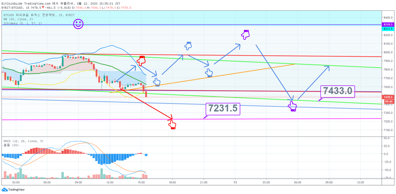 BTCUSD 3월 12일 비트코인 차트분석입니다.(트레이딩뷰 시작과 현재) by BitCoinGuide on TradingView.com