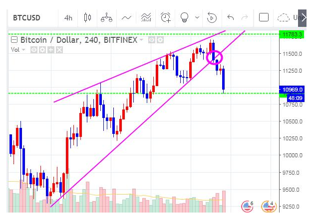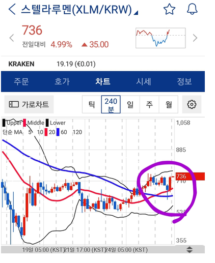 위 차트를 보시면 4시간 비트코인 봉입니다.20시 이후로 고점은 낮추고,저점은 올리면서 삼각수렴 패턴을 뛰고 있습니다.이 삼각형이 수렴할때쯤 강한 하락 혹은 강한 상승을 예측할 수 있습니다.