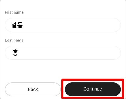 이어서 'First Name'에 '성', 'Last Name'에 '이름'을 넣어줍니다. 한글로 적어주시면 됩니다.