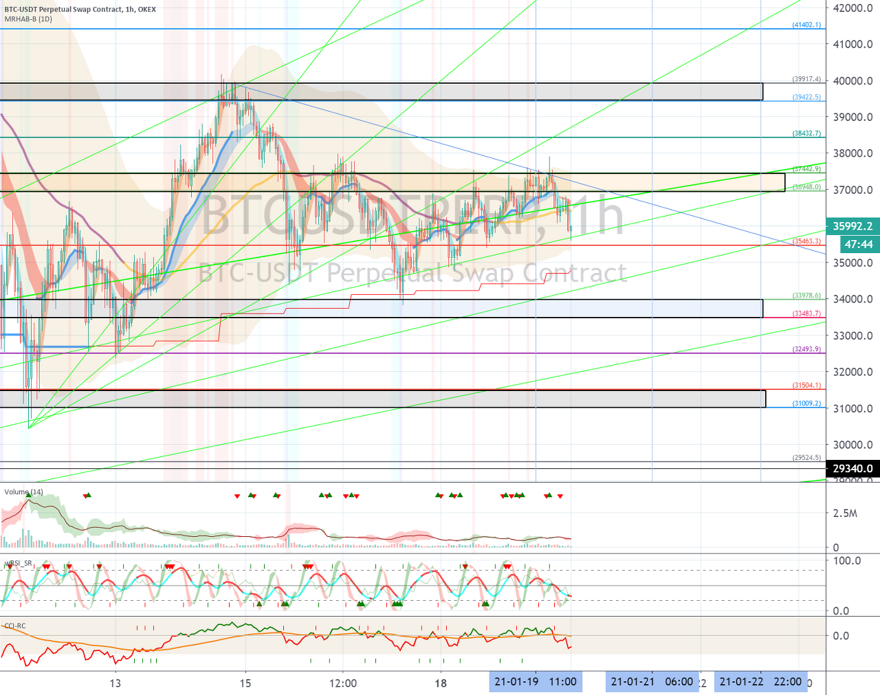 BTC 가격이 서서히 하락하면서 34107.5 지점 근처에서 지지를 받는 모습이 나오고 있습니다.