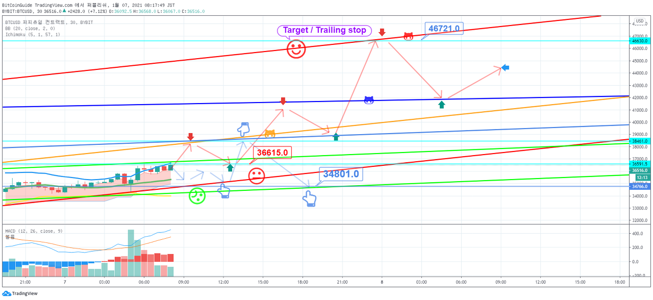1. 진입 지점 : 37442.9 지점을 상향 돌파시