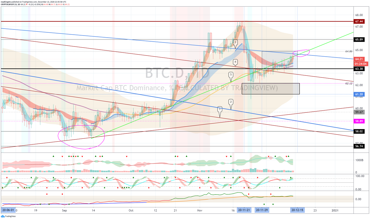 2) 현재 가상자산 시장의 시장지배율은 보자면, 비트코인의 시장지배율은 64% 가량을 유지하고 있습니다
