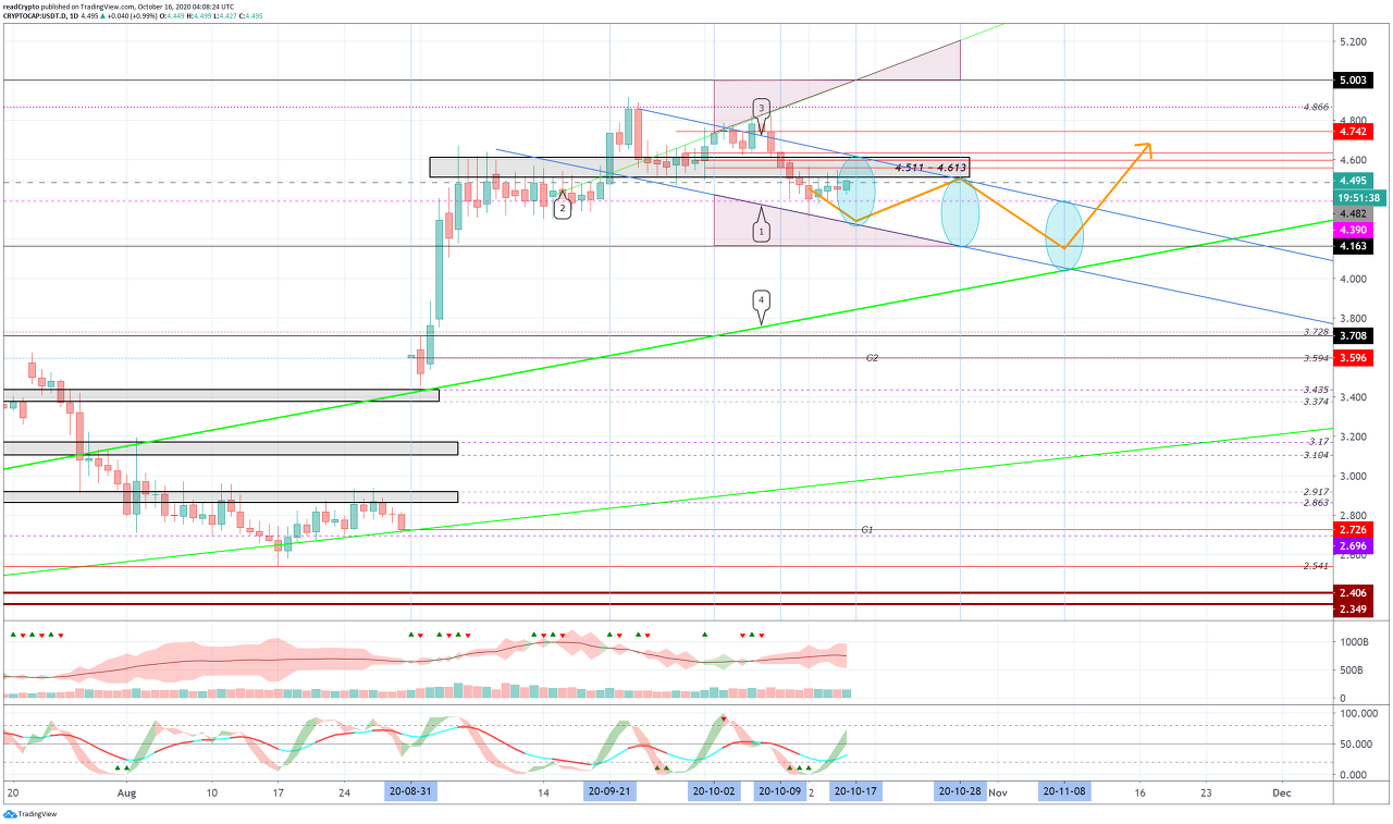 61.195 지점에서 저항을 받고 하락 추세선 (2)를 따라 하락한다면, 알트코인들은 상승할 것으로 예상됩니다.