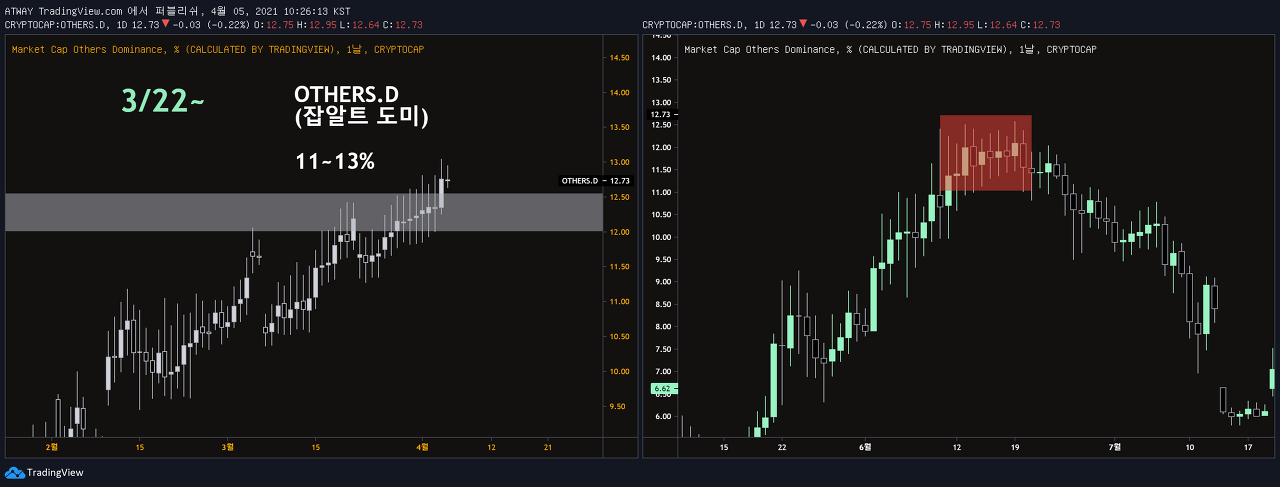 과거 데이터를 참고하였을 때 잡알트 도미넌스의 급격한 증가세는 오히려 위험신호로 받아들여야 합니다.