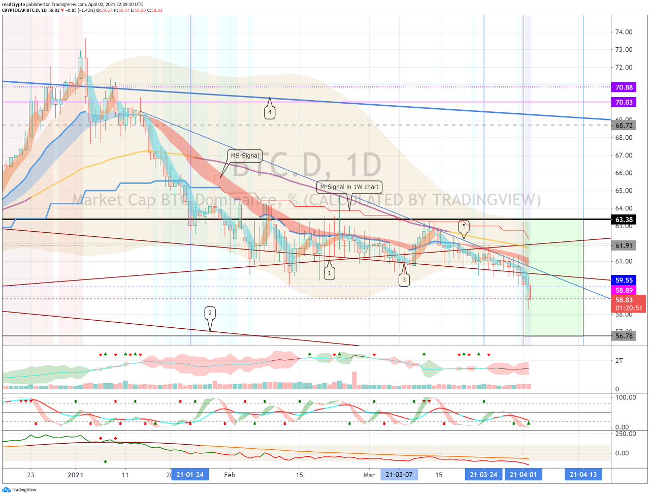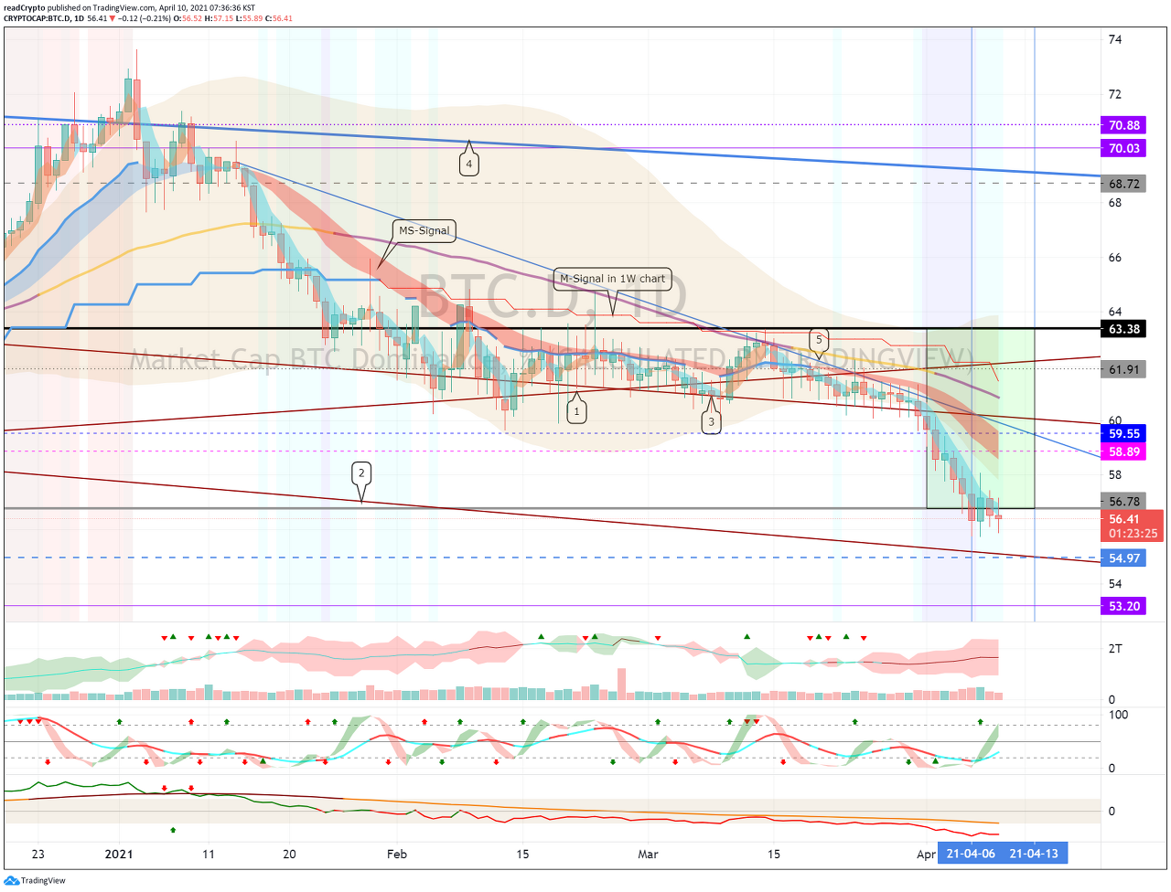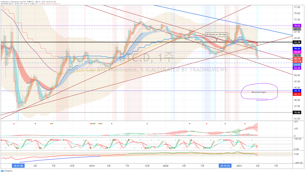 ( BTC 도미넌스 ( BTC .D) 1D 차트)