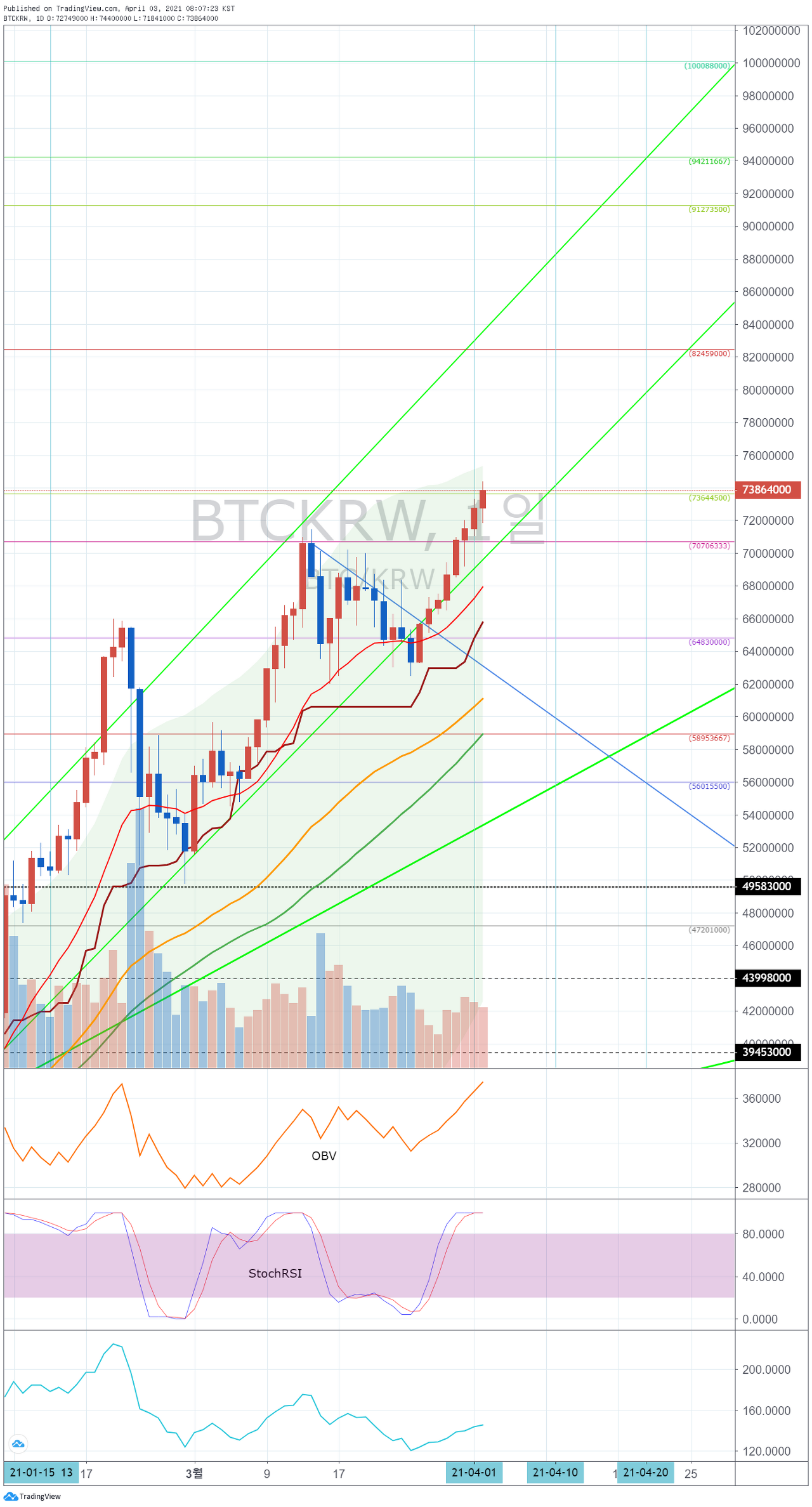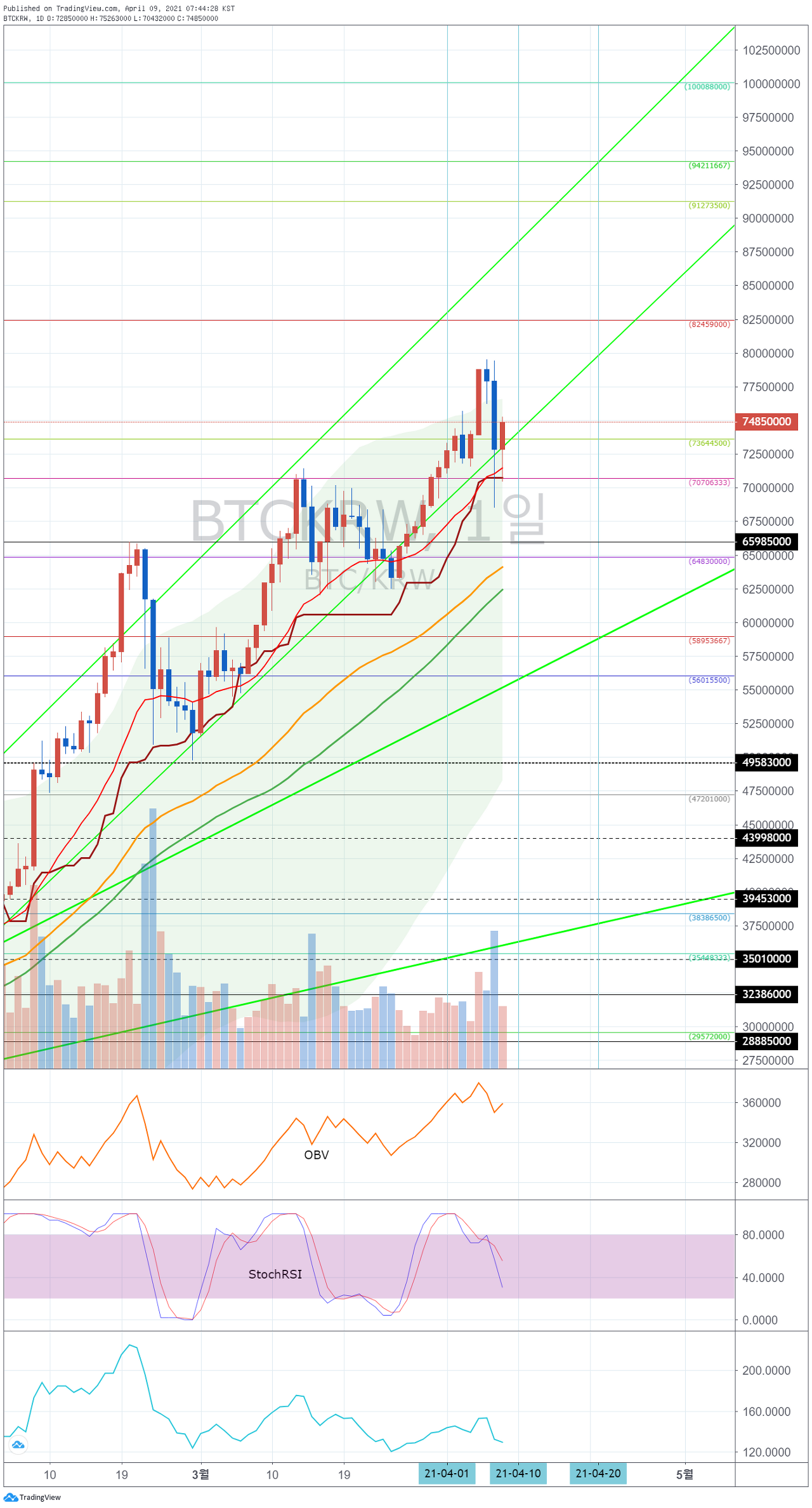 70694000-73622000 구간에서 하락한다면, 단기 Stop Loss가 필요합니다.