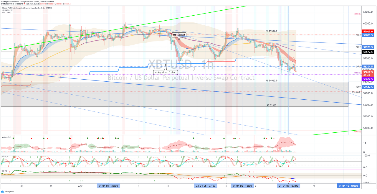 57577.5 지점에서 하락한다면, 단기 Stop Loss가 필요합니다.
