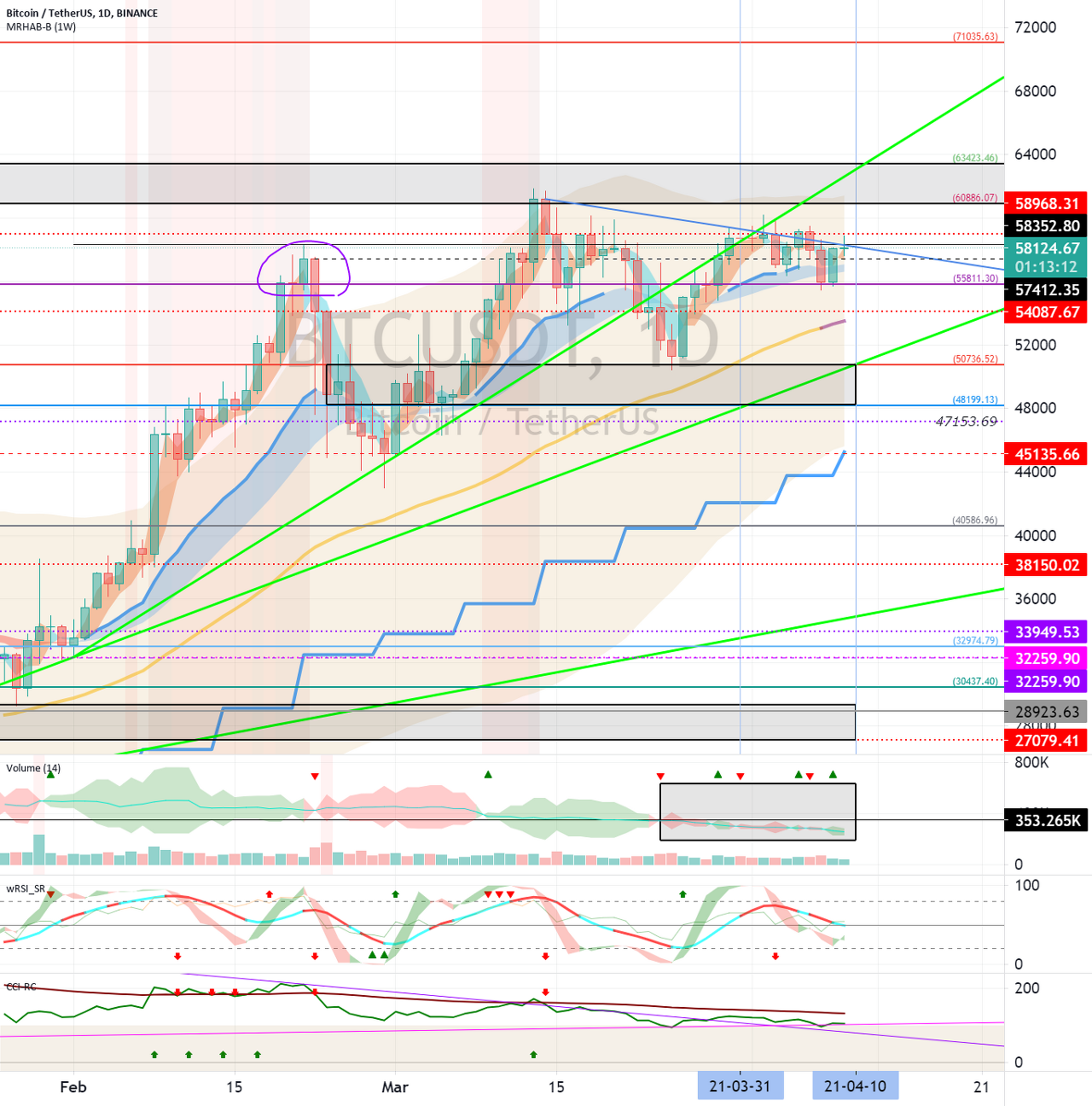 57412.35 지점에서 하락한다면, 단기 Stop Loss가 필요합니다.