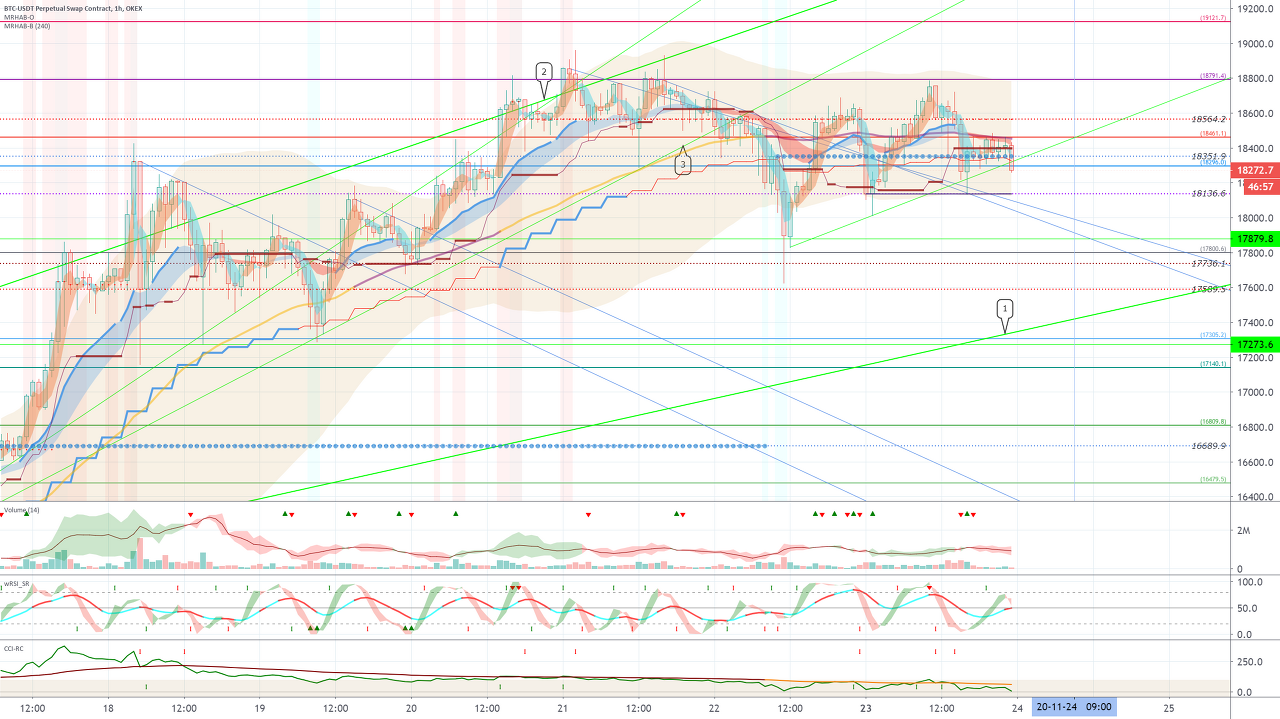 현재 BTC 가격을 보면, 18280.5 지점에서 지지를 받는 모습을 보여주고 있습니다.