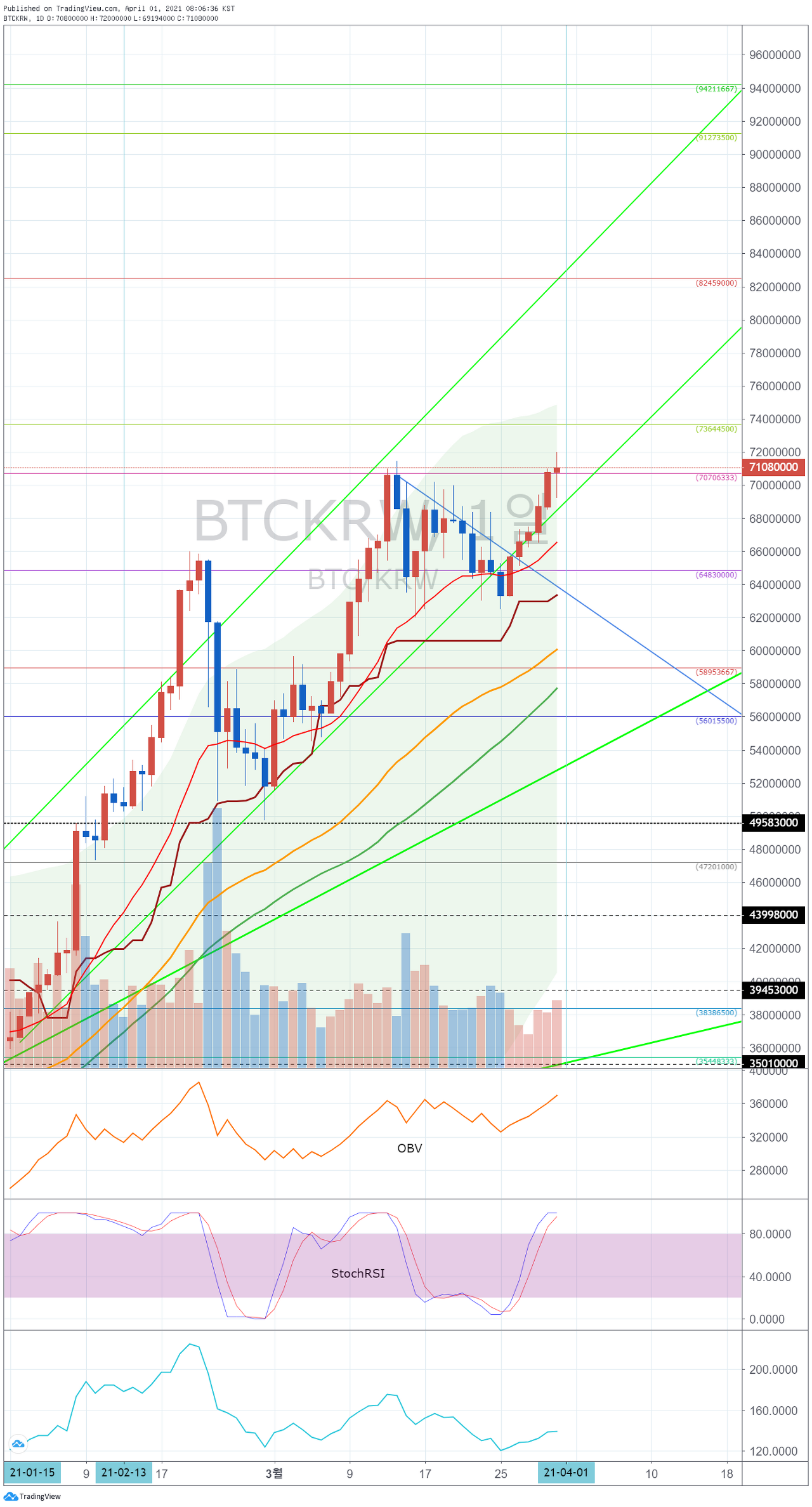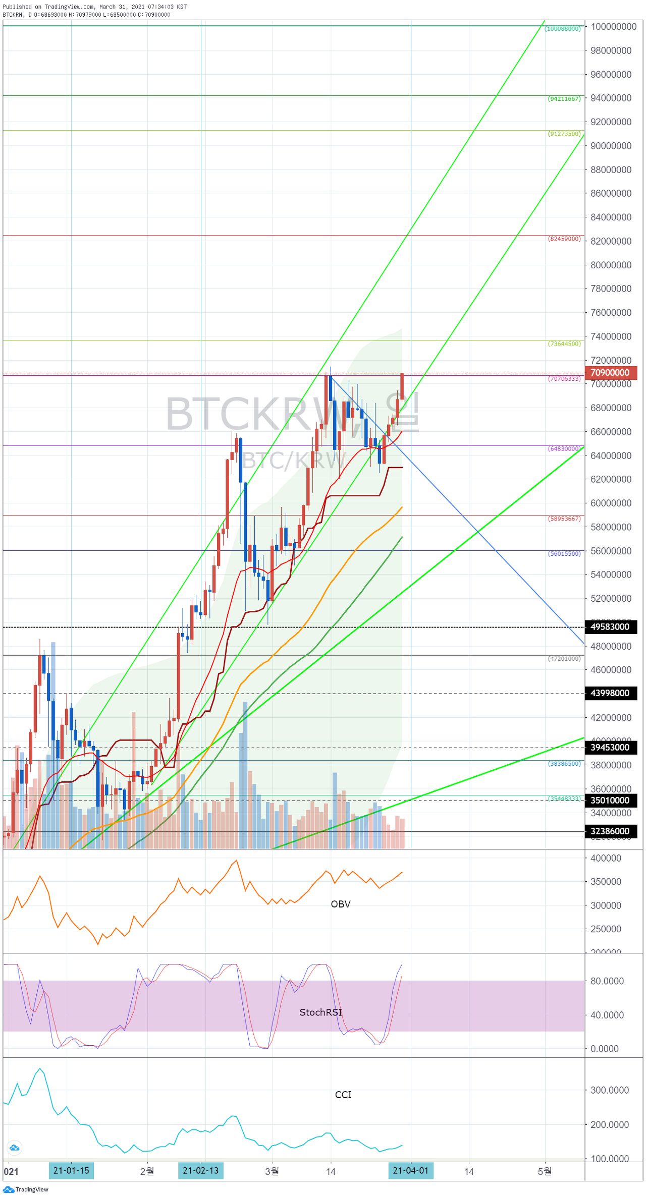 70694000 지점 이상 상승할 수 있는지 지켜봐야 합니다.