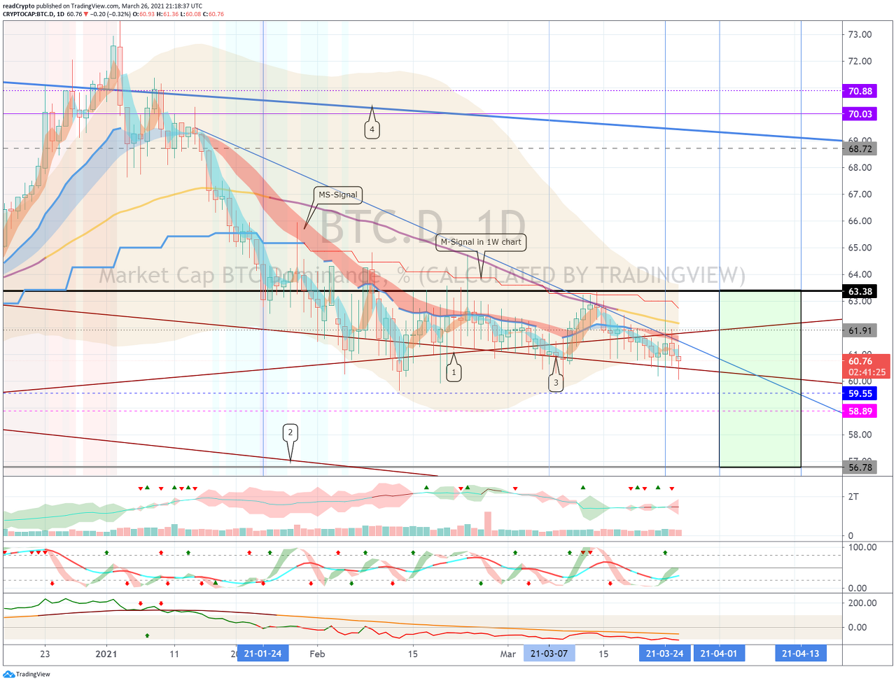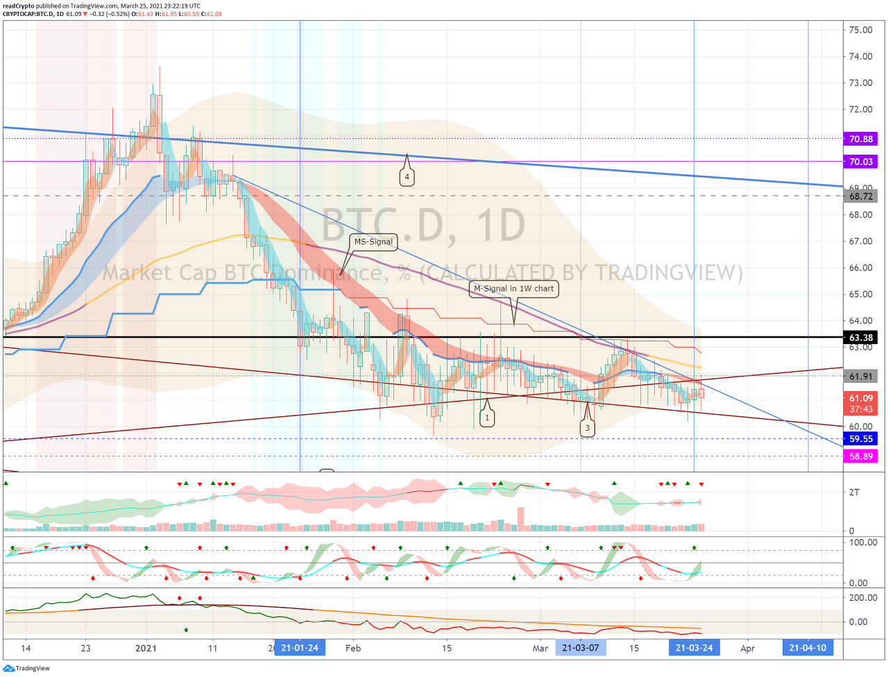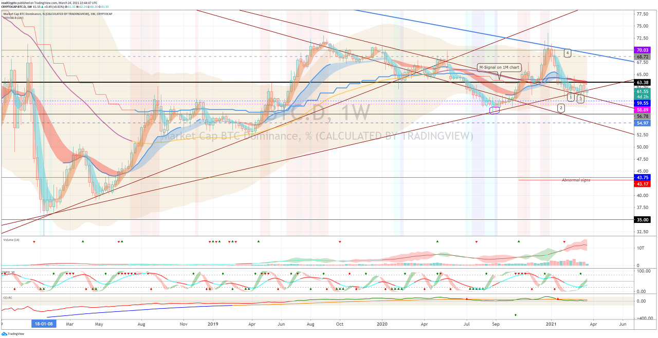알트코인의 상승장은 BTC 도미넌스가 63.38 지점 이하에 위치해 있을 때라 생각합니다.